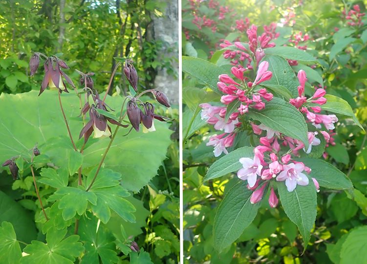 | 七時雨山麓のヤマオダマキとタニウツギ(6月1日) |